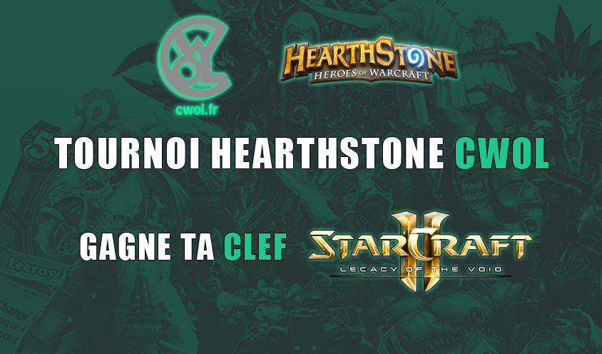 Hello tout le monde, Starshipjohn a décidé de son initiative d’organiser un tournoi ouvert Hearthstone pour tous les joueurs de la structure Cwol, se sera un tournoi amical le lundi 23 novembre à partir de 21h lien du tournoi pour participer.